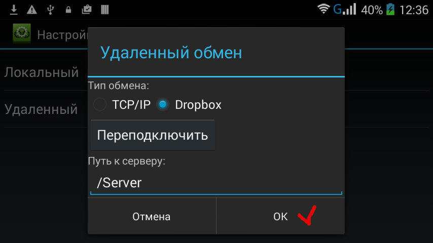- Завершите настройки Удаленного обмена, тапнув ОК