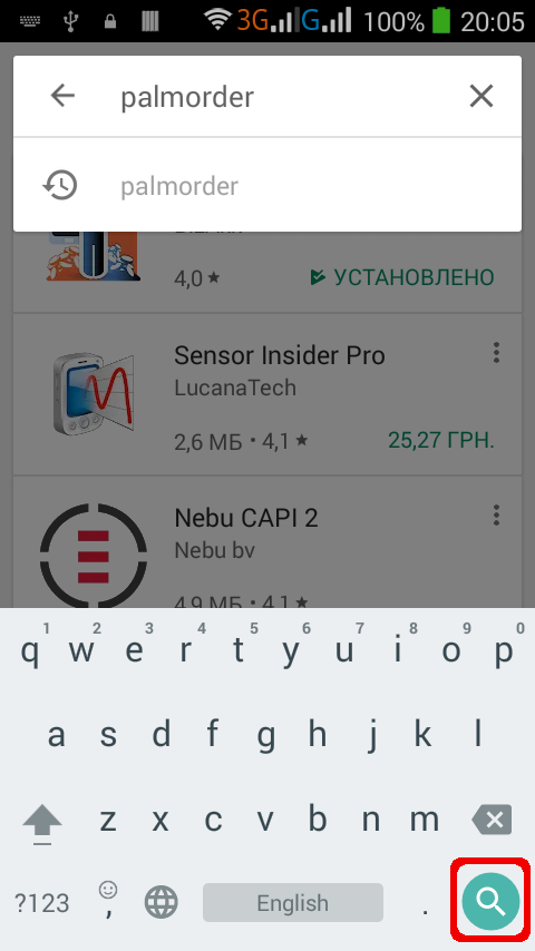 и в появившемся окошке наберите palmorder. Как переключить на латиницу? Нажмите пальцем клавишу пробела и удерживайте ее несколько секунд. Это и есть «длинный тап». Появится окошко для выбора способов ввода. Выберите английский.