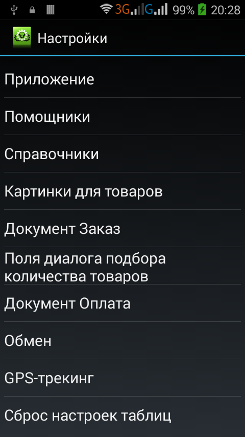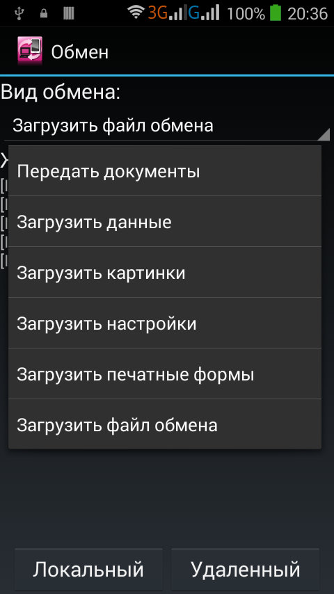 После выполнения обмена в режиме «Загрузить файл обмена» устройство готово к полноценной работе. Как видно на картинке, теперь вы можете, помимо загрузки другого файла обмена (да, файл обмена можно менять), передать созданные в процессе работы документы (и фотографии), передать базу данных и журнал ошибок)), загрузить данные, заботливо подготовленные для вас коллегами из отдела продаж, в том числе картинки (имеется в виду, что вы можете хранить на устройстве изображения товаров и хвастаться демонстрировать их потенциальным покупателям), загрузить настройки и формы печати (подробнее об этом в руководстве администратора).