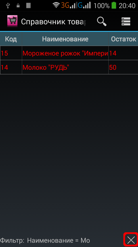 Поясню. Если установить в качестве фильтра в колонке «Наименование» значение «мо», то будет найдено лишь одно значение — «Замок». А если установить «Мо», то удовлетворять этому условию будут два значения — «Молоко «РУДЬ»» и «Мороженое-рожок «Империя»». А «Замок» сюда не попадет.
