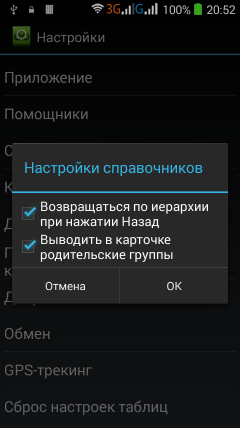 Вернитесь в справочник «Товары», если вы перешли в «Клиенты». Включите иерархию, если она отключена. Мы уже говорили, что данные в справочнике имеют иерархическое представление. Чтобы попасть в папку, просто тапните на ней. Раскроется ее содержимое, а сама папка будет подсвечена серым цветом. Чтобы перейти на уровень вверх, тапните на строке, подсвеченной серым. При нажатии кнопки «Назад» вы выйдете из справочника в главное окно программы. Однако, можно действие кнопки «Назад» в иерархическом справочнике настроить по другому: тапните иконку «Настройки», выберите «Справочники», установите флажок «Возвращаться по иерархии при нажатии Назад». Теперь, находясь во вложенном уровне, при нажатии «Назад» вы будете переходить в справочнике на уровень вверх. Выбирайте вариант, который вам удобнее. Если вам удобнее работать с выключенной иерархией, то полезной будет установка флажка «Выводить в карточке родительские группы». Так при выключенной иерархии в карточке товара (Деталях) будут выводиться группы, к которым принадлежит данный товар.
