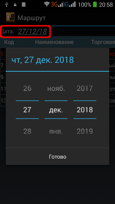 Маршрут стоит особняком. Потому что это нечто среднее между справочником, журналом и документом. С одной стороны, представленные элементы на страничке — клиенты, что дает сходство с одноименным справочником. Контекстное меню и выбор клиента на Рабочий стол здесь работают так же. С другой стороны эта страничка — план посещений клиентов на дату (день), но просмотреть маршрут целиком за какой-то период нельзя, и с этой точки зрения он может рассматриваться как журнал документов, но в котором одновременно все документы увидеть на экране нельзя. Ведь выбрав другую дату (для этого тапните дату, появится календарь, выберите в нем другую дату и тапните «Установить»), мы получим другой список, хотя и в одном и в другом списке клиенты могут повторяться, как повторяются товары в разных документах. Как бы там ни было, но с помощью длинного тапа на клиенте в «Маршруте» вы можете создать любой документ: «Заказ», «Оплата» или «Стор-чек», при этом клиент будет выбран на Рабочий стол (короткий тап просто выберет клиента на Рабочий стол, как уже отмечалось). «Детали» просто выдадут некоторую информацию по клиенту без последствий (т. е. без выбора на Рабочий стол). После создания документа клиент, для которого документ создан, будет выделен красным. Что также является сигналом о посещении торговой точки. Как воспроизвести сигнал о посещении, если клиент ничего не заказал? Создайте пустой документ «Заказ». Соответствующий значок появится на карте GPS-слежения в вашем аккаунте на сайте gps.palmorder.com (необходима регистрация). Маршрут на вашем устройстве (назовем его плановым) можно сравнивать с фактическим, используя функцию GPS-слежения (GPS-online) в своей учетной записи на нашем сайте gps.palmorder.com. Маршрут нельзя сформировать самому, изменить или удалить. Он формируется на сервере и передается на устройство при обмене в режиме «Загрузить данные».