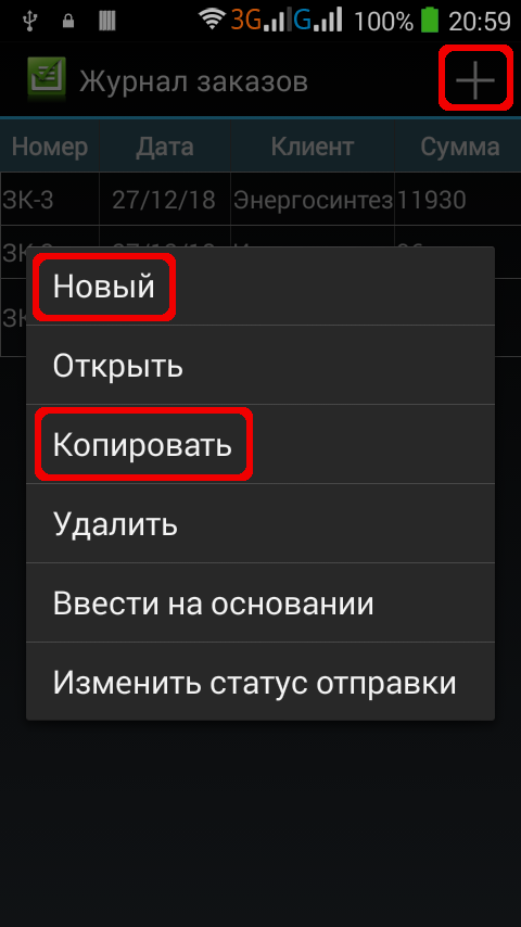 Верхняя строка журнала содержит название журнала (слева) и панель с кнопками «+» (надеюсь, не нужно объяснять какое действие она производит) и «Меню». Если кнопки меню нет, как в моем случае... ну, вы помните)). В меню у нас четыре блюда: «Отчет», «Фильтр», «Удалить отправленные» и компот «Настройки». С фильтром вы уже научились работать, изучая справочники. Если фильтр необходимо установить по клиенту, вместо него можете использовать функцию выбора клиента на Рабочий стол. Отчет вам выдаст минимально возможную информацию по документам, а именно: сколько документов, общая сумма со скидкой и без. Не б-г весть что, но все-таки. Название пункта «Удалить отправленные» говорит само за себя. Здесь следует отметить, что документы автоматически не удаляются, так что можете хранить их для истории). И да, этого пункта нет в журнале задолженностей. Хотя, можно было бы добавить ради прикола. В меню журналов также нет пункта «Настройки». Уже есть! Но это еще не значит, что вы не можете использовать старый добрый длинный тап на заголовке колонки. Почему не включили в меню? Не поверите — забыли! Почему включили в меню? Не поверите — вспомнили!))