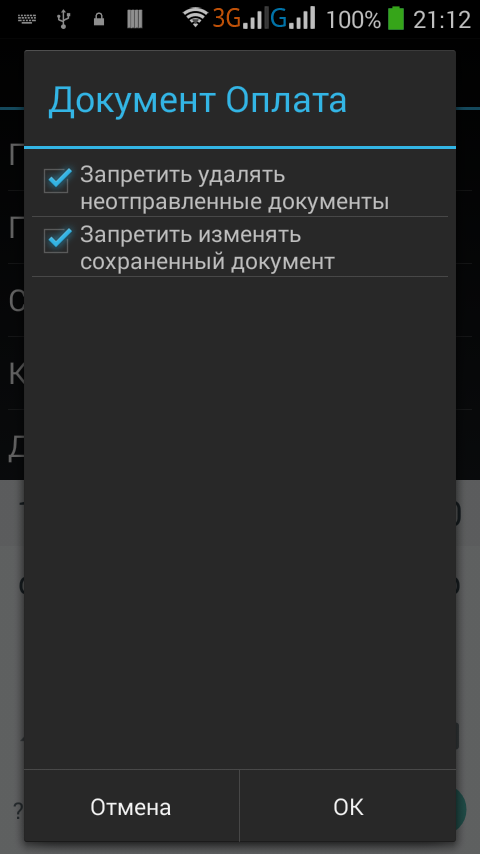 Не делайте этого. Ведь если в «Настройках» — «Документ Оплата» установлены флажки «Запретить изменять сохраненный документ» и «Запретить удалять неотправленные документы», то фиктивный документ «Оплата» (тот, который на 20000 денег, а не на 20 копеек) таки придется отправить на сервер. А на его основе в бухгалтерии сформируют приходный кассовый ордер, по которому у вас затребуют внести денежки в кассу. А я ведь предупреждал — себе дороже выйдет. Может, попробовать просто изменить статус отправки, а потом удалить?))