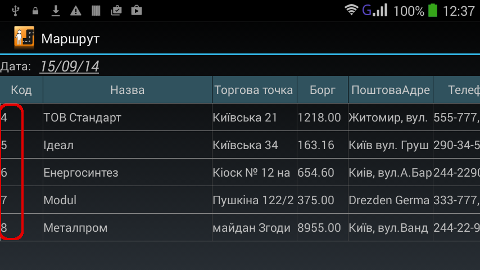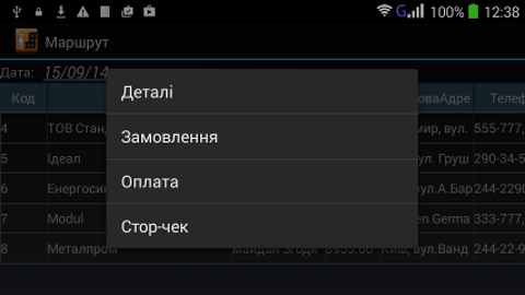 Замість week_day, який використовується в якості дня тижня (1 — понеділок, 2 — вівторок... 7 — неділя), можна використовувати поле date як конкретну дату в форматі YYYY-MM-DD. Наприклад 2014-08-21 відповідає 21 серпня 2014 року. Вибравши на пристрої «Маршрут» і встановивши цю дату, ви зможете побачити на екрані пристрою перелік контрагентів, до яких необхідно завітати. Окрім того, прямо тут можна сформувати документи «Замовлення», «Оплата» або «Стор-чек», викликавши контекстне меню (довгий тап на контрагенті).